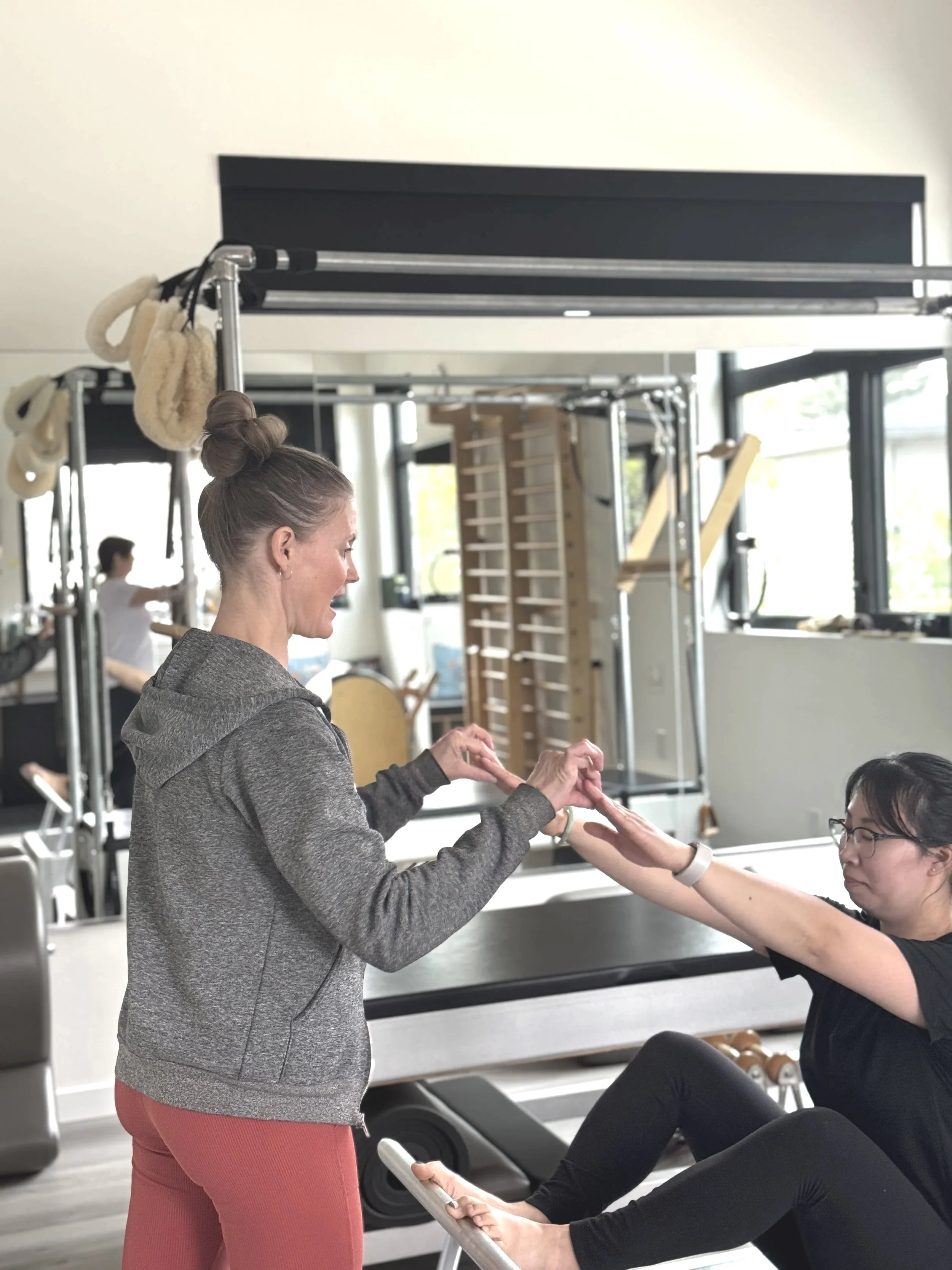 Our teachers are trained and certified by Carmen Lanteigne, Director of Education for THE PROGRAM™ Pilates Teacher Certification, which follows the lineage of first-generation teacher Jay Grimes, a direct student of Joseph Pilates.